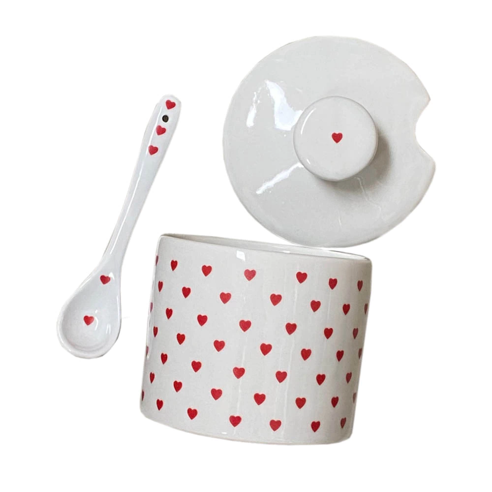 Açucareiro Em Porcelana Com Tampa 250ml Corações
