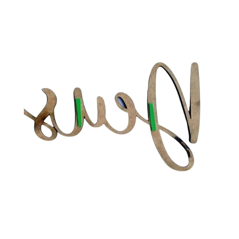 Aplique palavra produzido em MDF de 3mm na cor preta