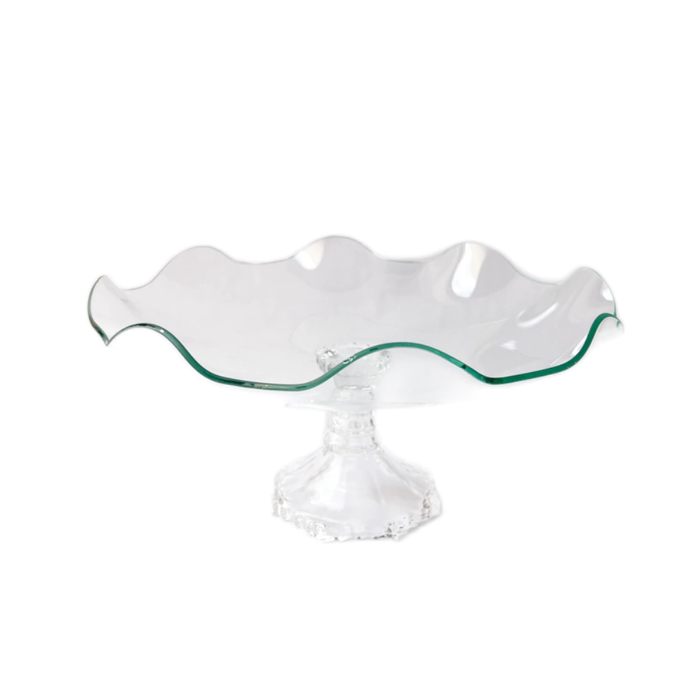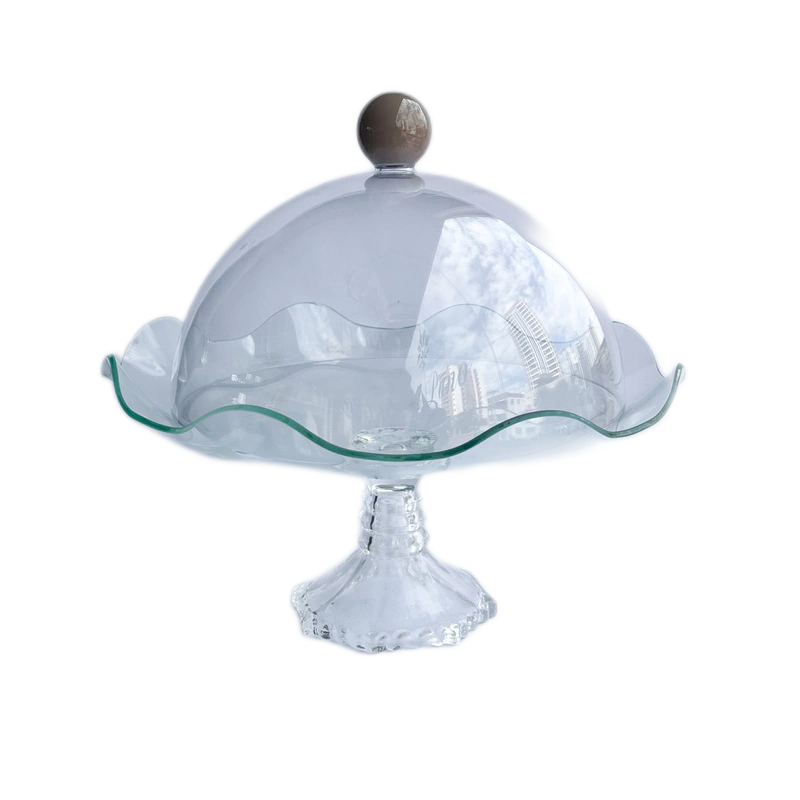 Boleira de vidro com tampa de acrílico com bolinha bege 30cm