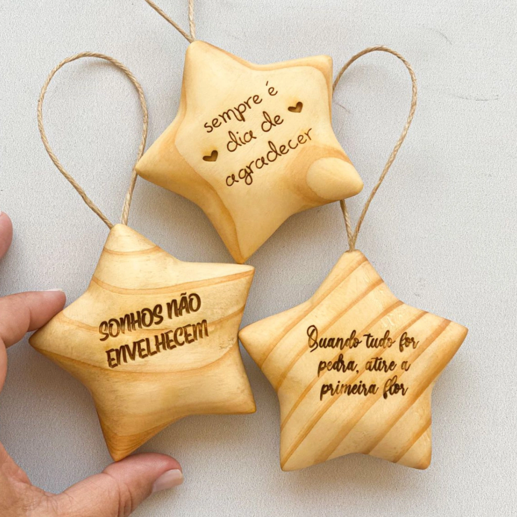 Estrela feita em madeira pinus com escrita personalizada, ótimo enfeite para colocar onde sua imaginação levar!