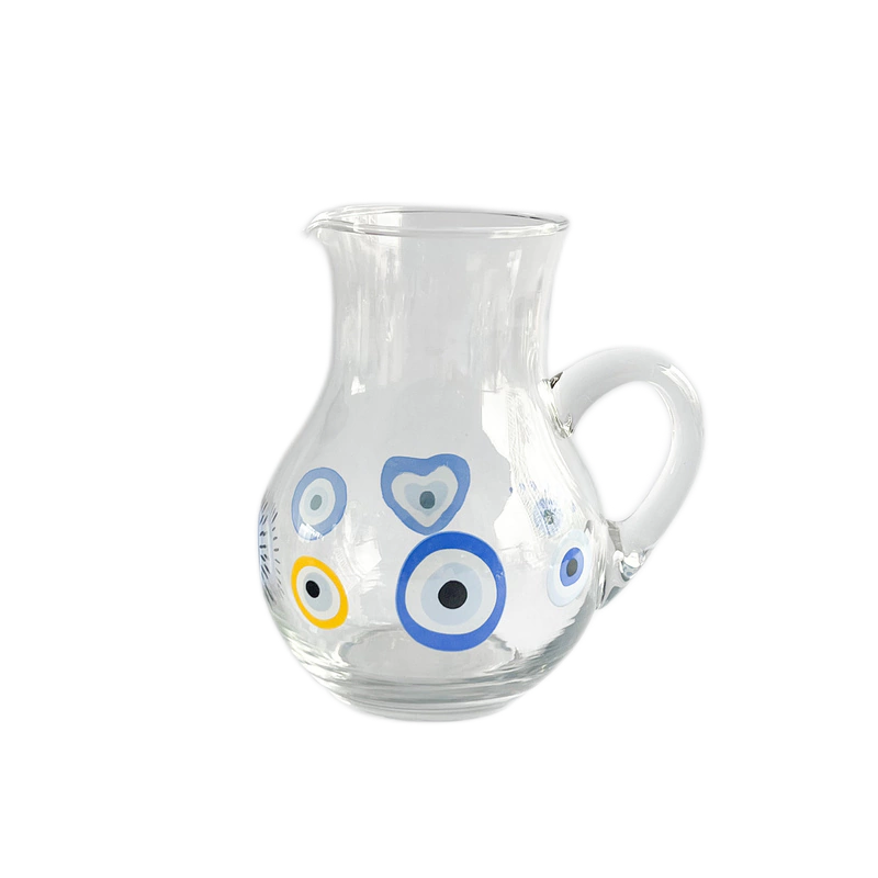 Esta linda Jarra é fabricada em vidro e com capacidade para 500 ml com a estampa da coleção olho grego