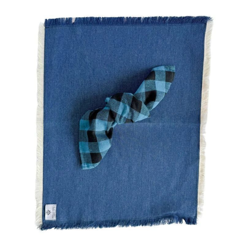 Jogo Americano Linho Desfiado Azul e Guardanapo Xadrez