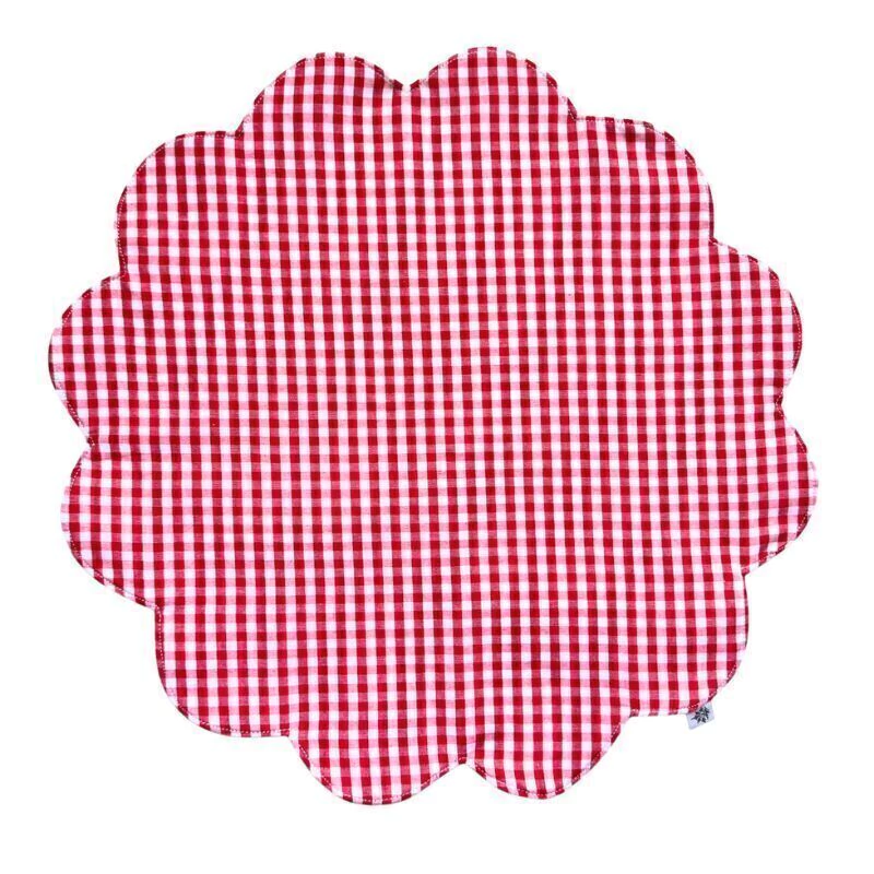 Jogo Americano em formato de flor xadrez vermelho. Feito em xadrez vermelho 100% algodão , este jogo americano não apenas adiciona um toque acolhedor à sua mesa, mas também traz a magia do Natal para a sua decoração.