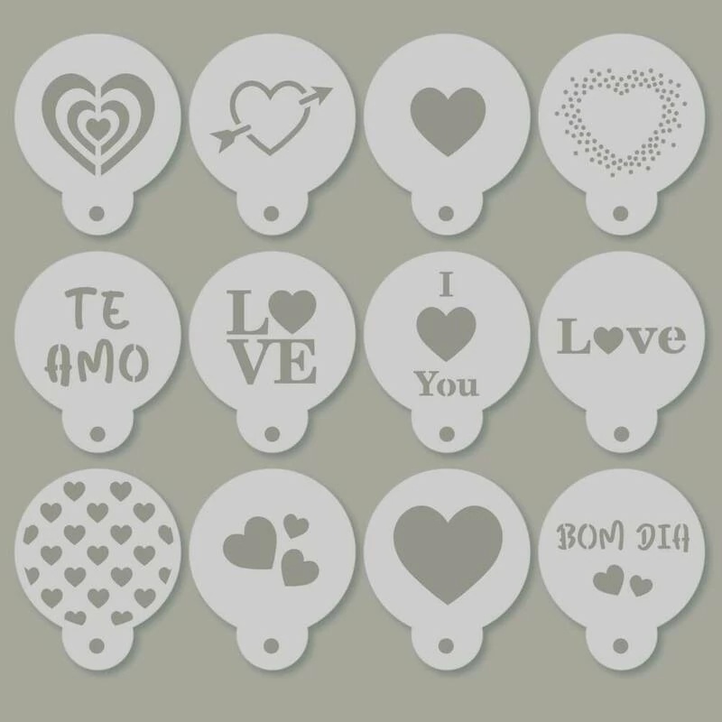 Kit com 12 Moldes Para Arte Em Café CORAÇÃO