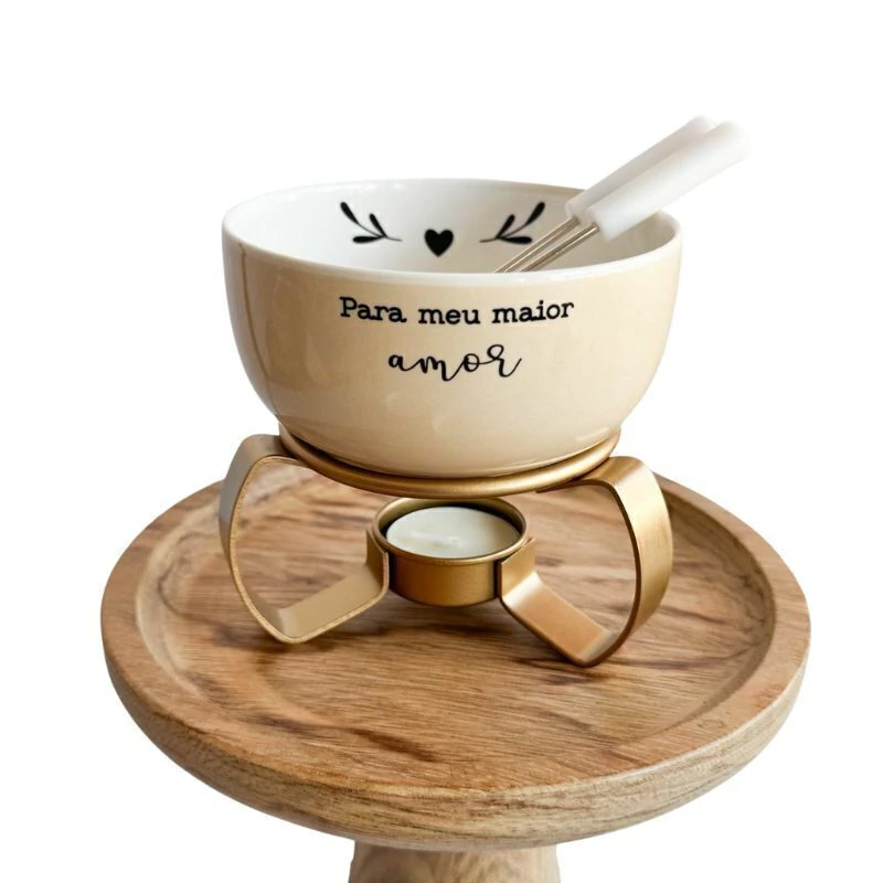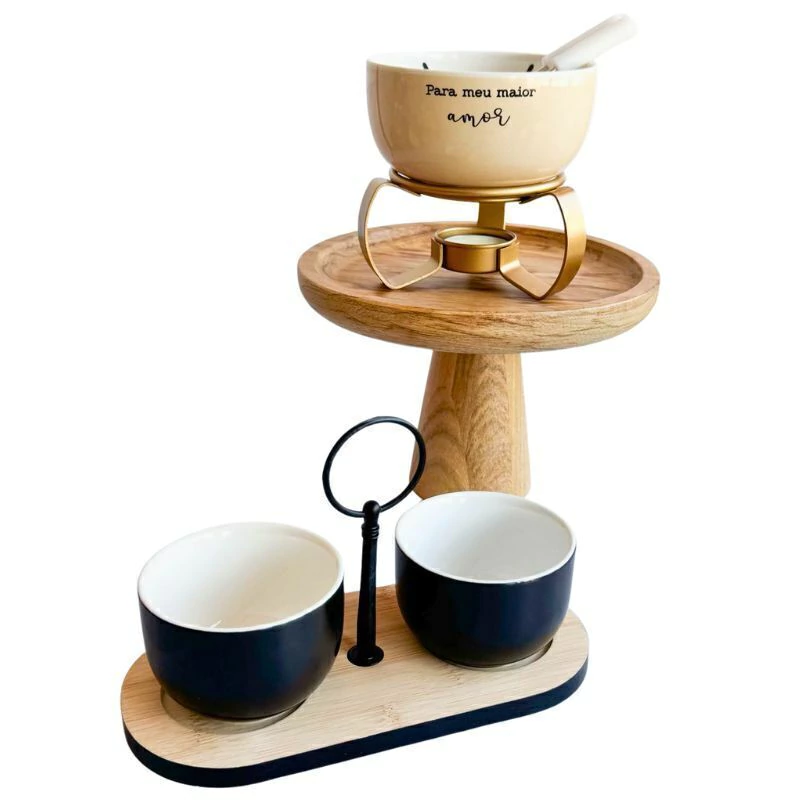 Kit 2 pessoas panela fondue xadrez e petisqueira bambu