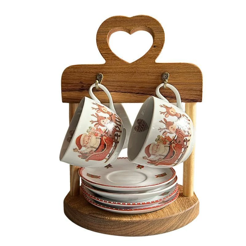 O kit Acompanha: 1 Organizador, 4 Xícaras e 4 pires