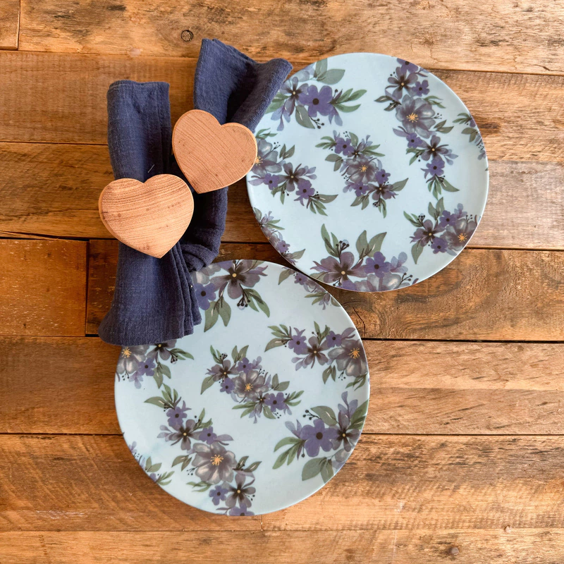Kit Prato Sobremea Floral Azul+Guardanapo e Porta Gauardanapo Week
