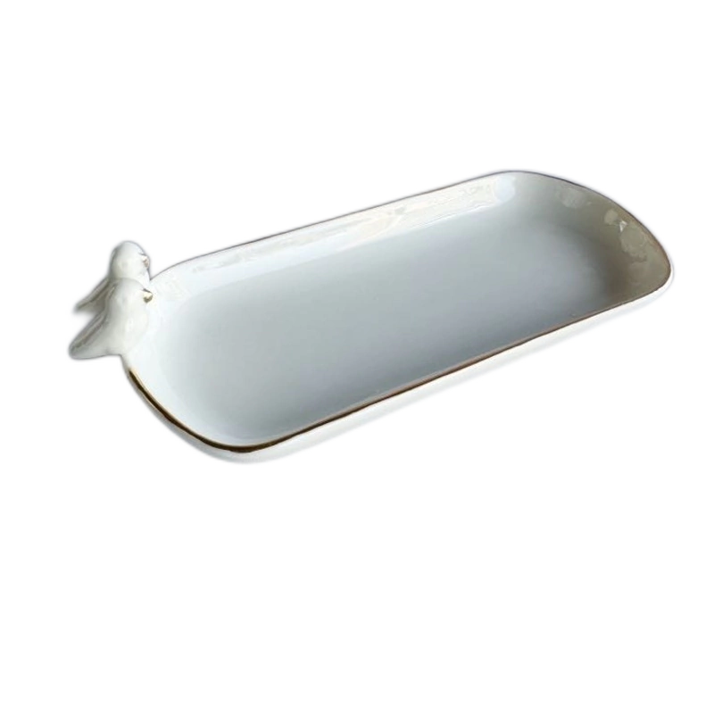Mini bandeja feito em porcelana com dupla de passarinhos.