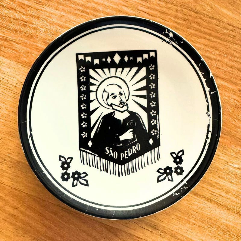 Prato Pão em Porcelana Junina Cordel são pedro 16cm