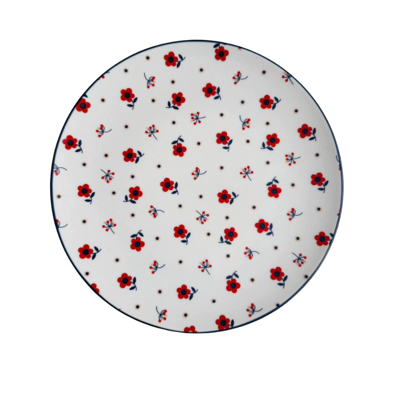 Prato Raso Porcelana Vintage Vermelho 26cm