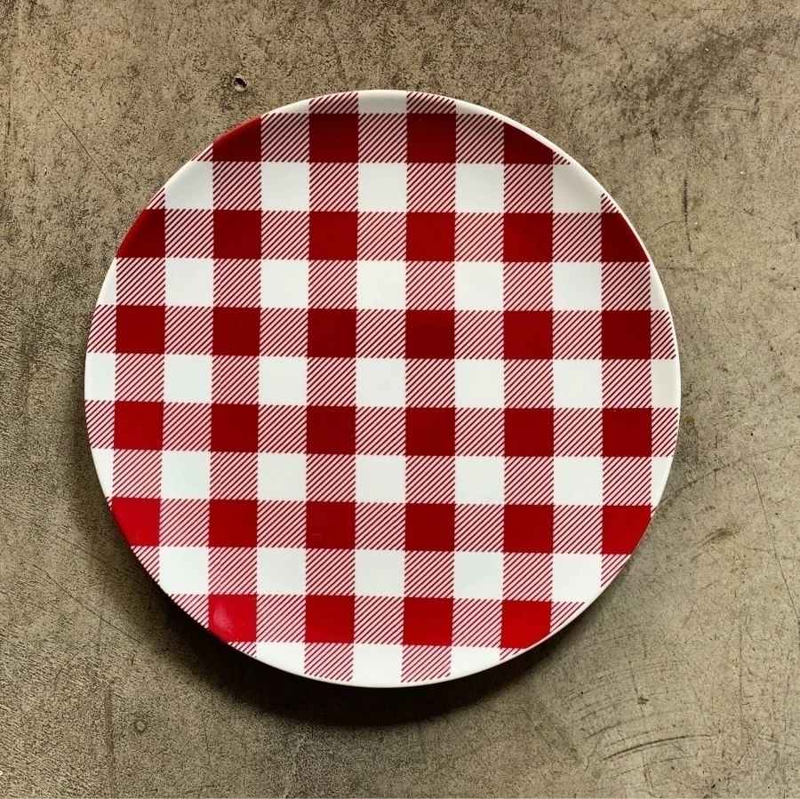 Prato Sobremesa Porcelana 20cm Xadrez Pub Vermelho