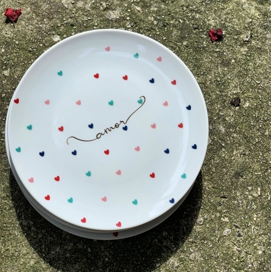 Prato Sobremesa Porcelana Colors Amor 20cm