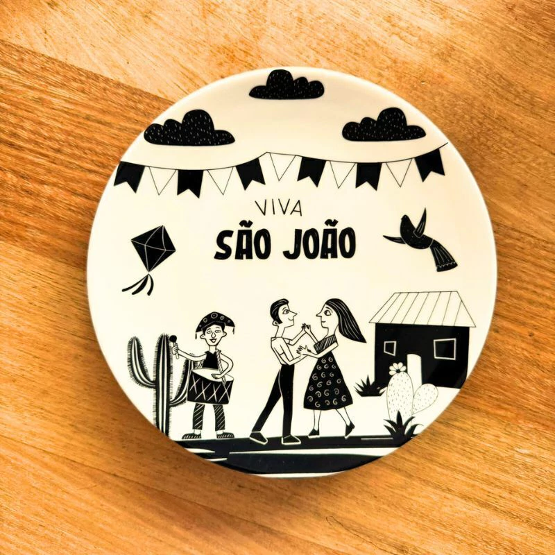 Prato Sobremesa Porcelana são joão branco 21 cm
