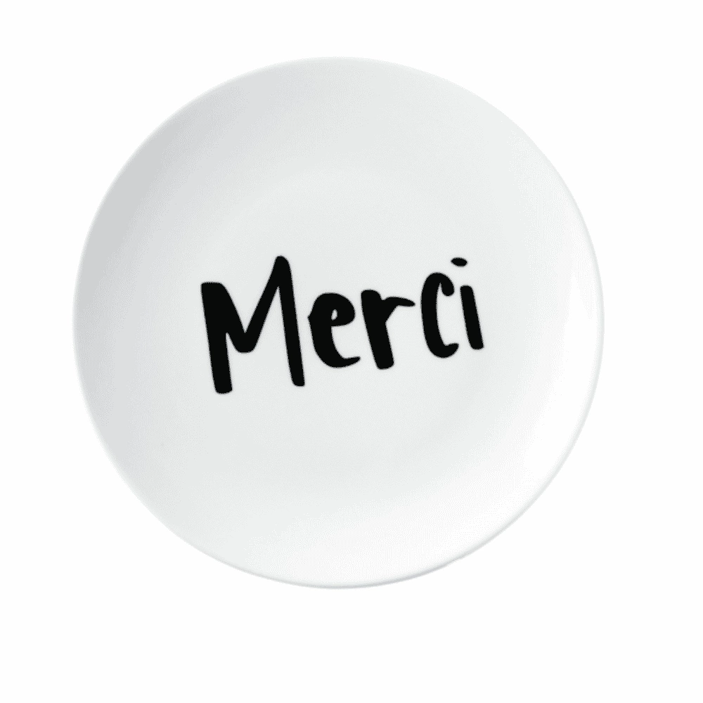 Estampa Escrita Merci. Prato decorativo ou até mesmo para ser usado na sua mesa, com um design e estampa aconchegante.
