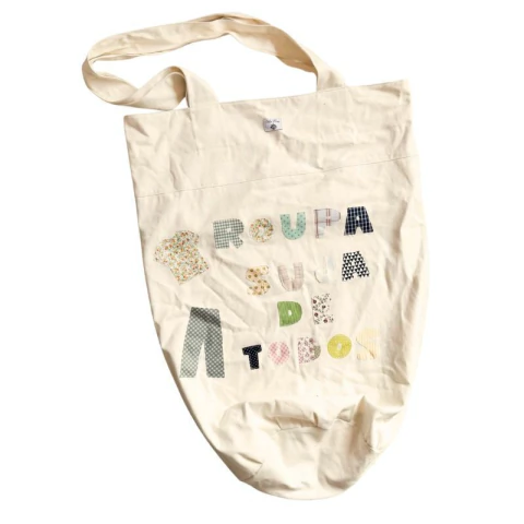 Aplicação com tecido com o escrito ROUPA SUJA DE TODOS