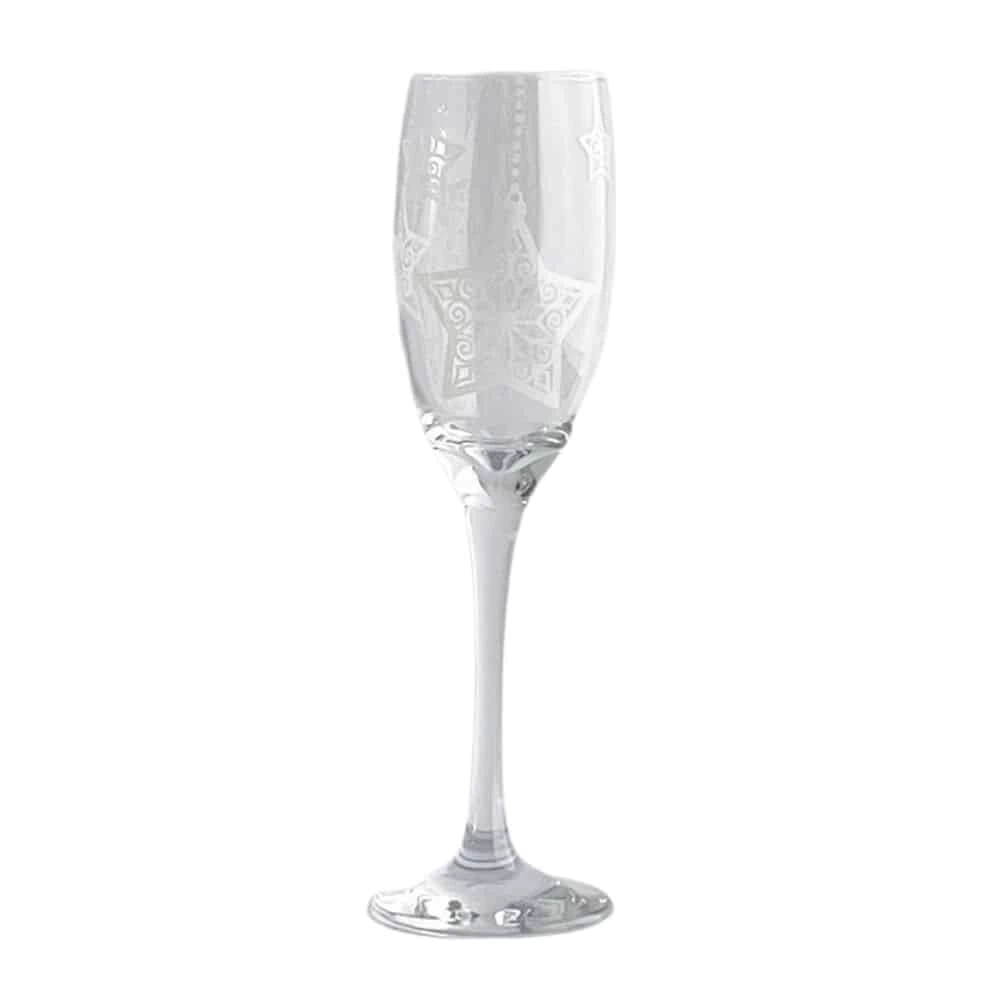 Taça champagne em vidro com estampa de estrelas brancas, ideal para decorar e trazer charme e elegância à sua mesa.