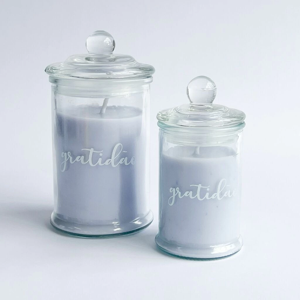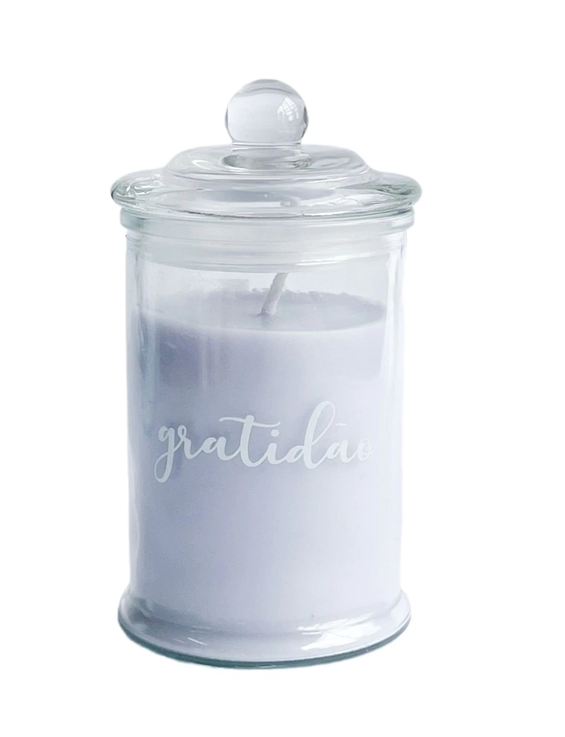 Vela Perfumada Lilás Estampa Gratidão G 250g