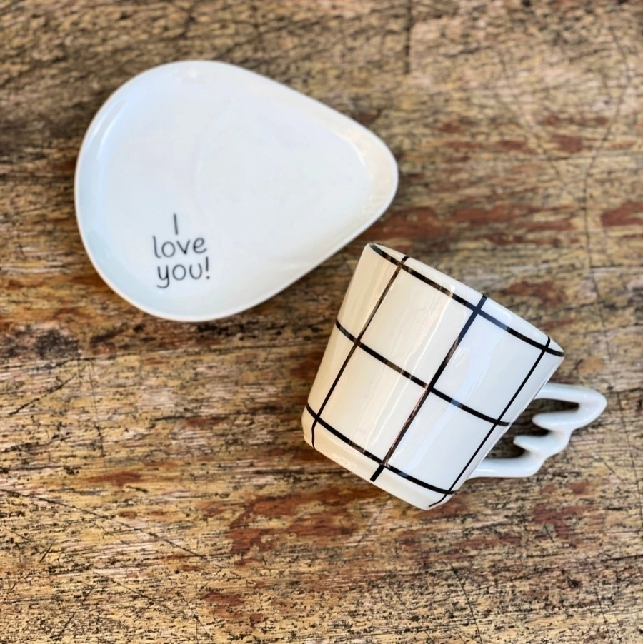 Refere-se a 1 xícara de chá e 1 pires de porcelana