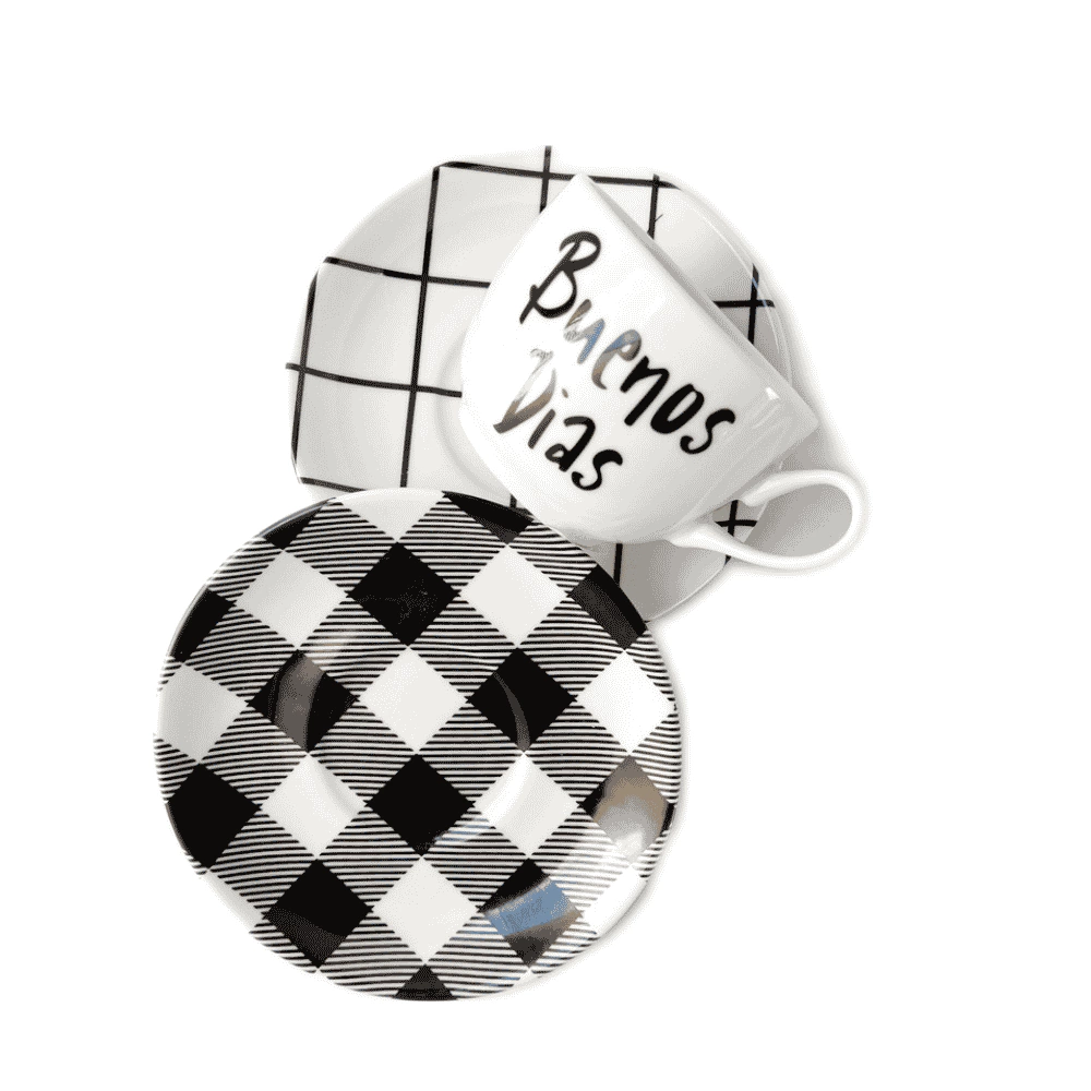 Preço refere-se a 1 xícara e um Pires de sua escolha Grid ou Xadrez Pub Preto