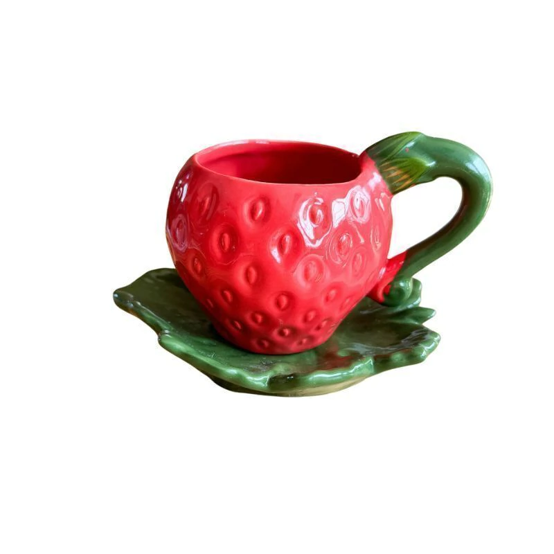 Xícara Morango com Pires de Folha 300ml